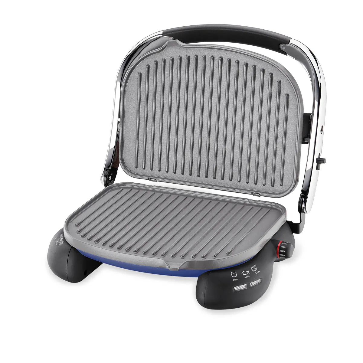 Korkmaz Castron Lacivert-Krom, şıklığı ve fonksiyonelliği bir araya getirerek mutfağınızda fark yaratır. 1800 Watt gücü, otomatik ısı kontrolü ve seramik kaplı döküm ızgaralarıyla, enerji tasarrufu sağlayarak lezzetli tostlar ve ızgaralar pişirmenize yardımcı olur.