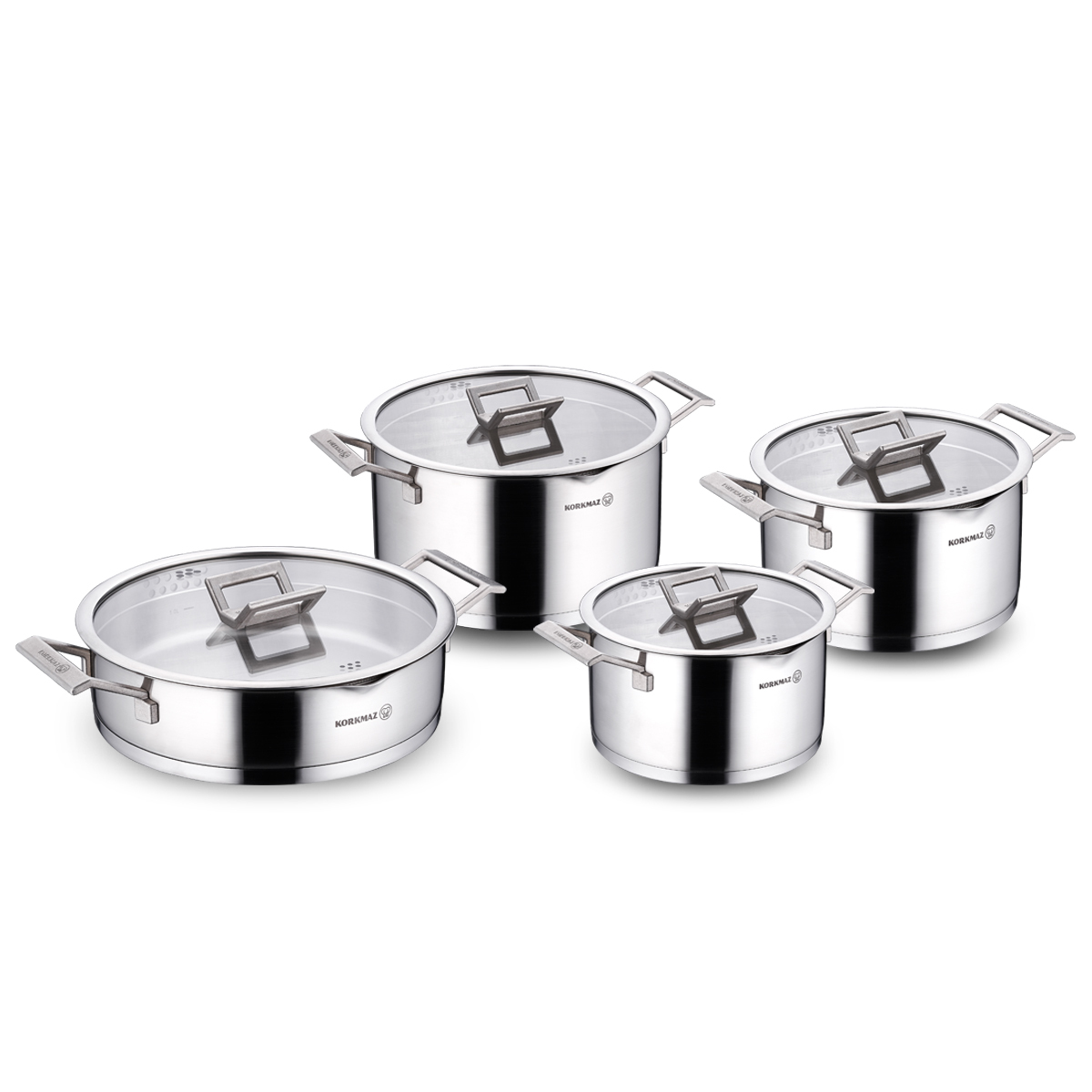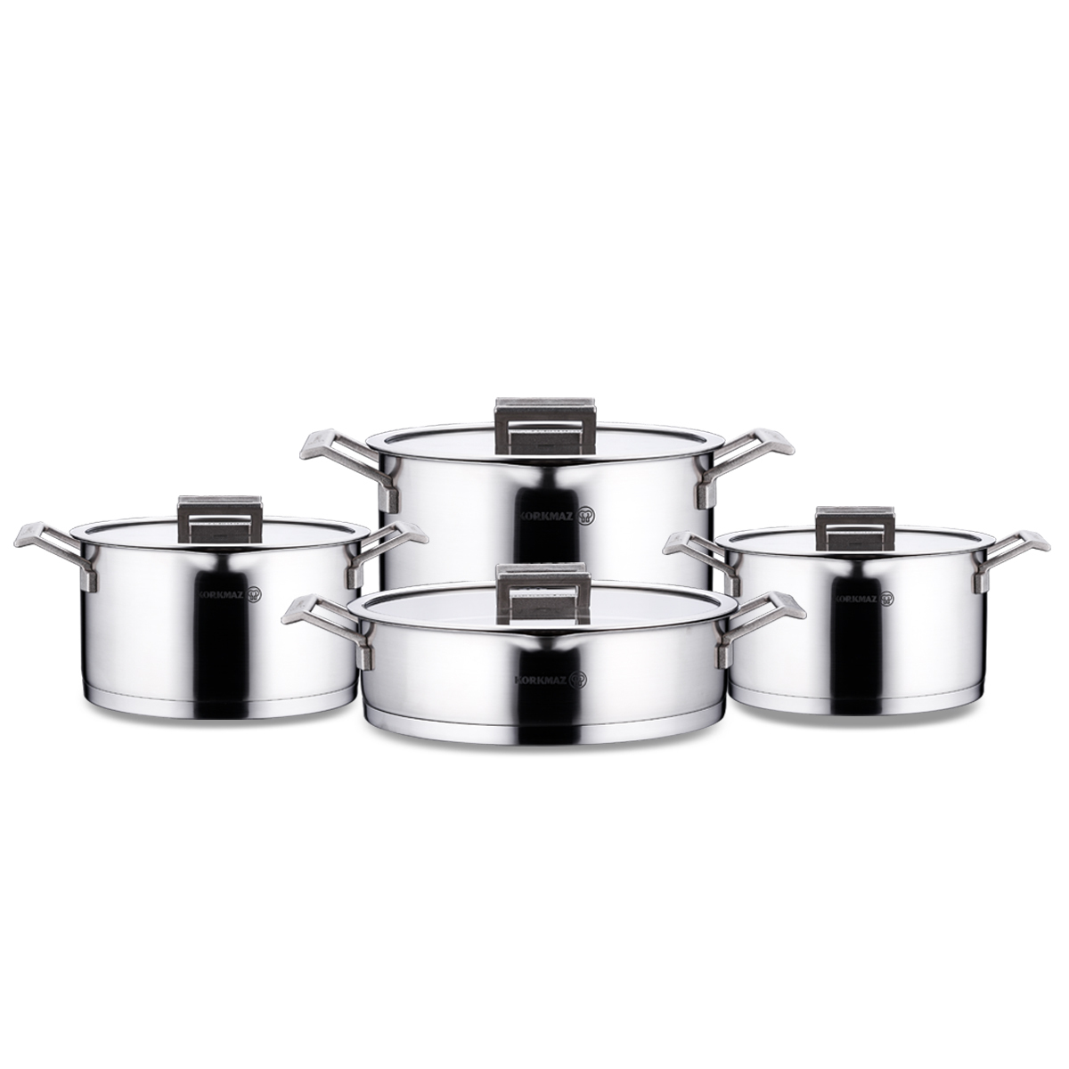 Bu set, farklı boyutlardaki 4 adet tencere ve onlara uyumlu 4 adet özel süzgeç kapaktan oluşmaktadır: