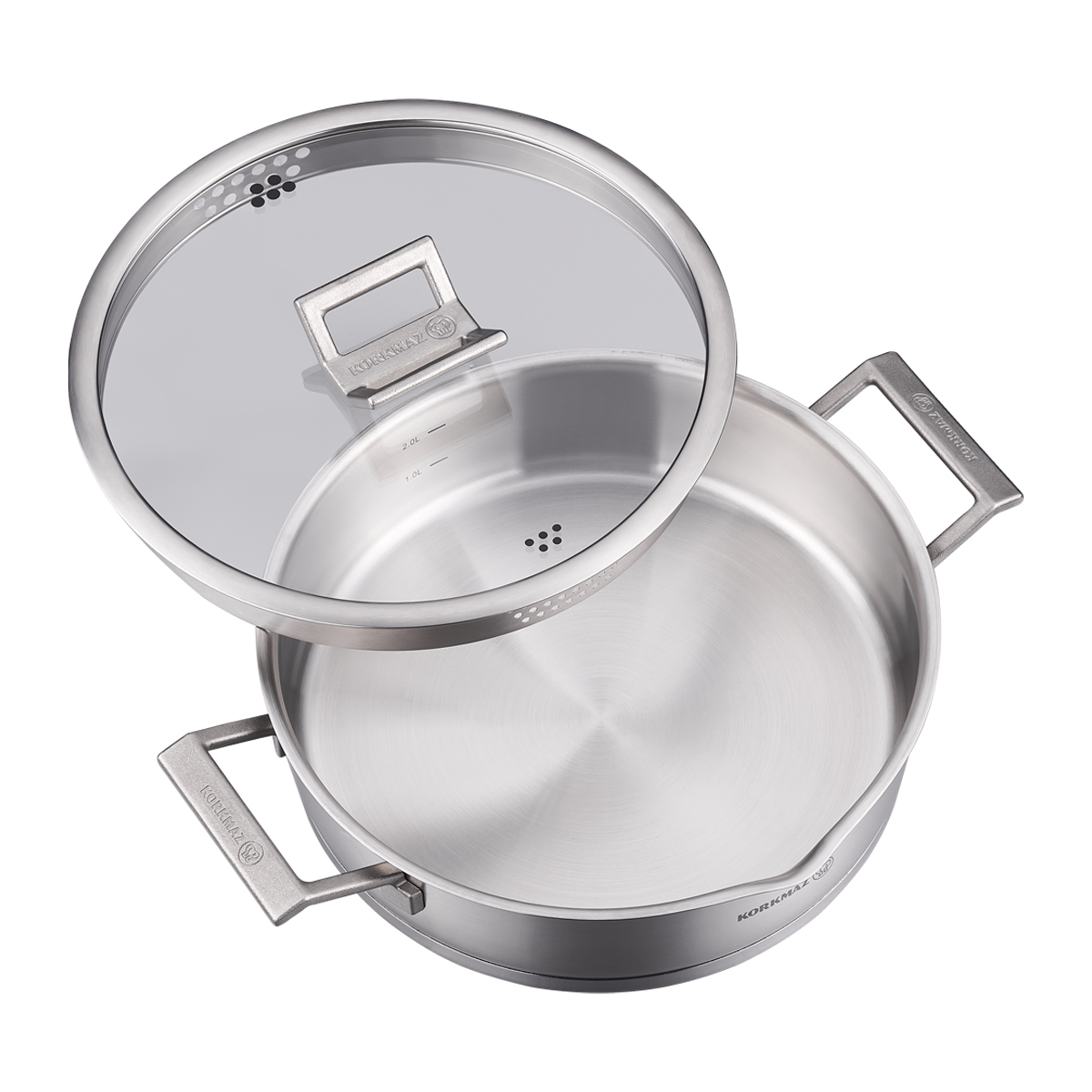 Fonksiyonel Süzgeç Kapak: Kapak kenarlarındaki özel delikler sayesinde ek bir süzgece ihtiyaç duymadan makarnanızı veya haşlanmış sebzelerinizi kolayca süzebilirsiniz.
