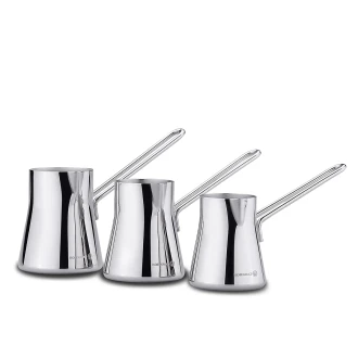 Provita cezve takımı şık ve ergonomik yapısı ile mutfağınızın şıklığı tamamlarken, kullanım kolaylığı sağlayan el yakmayan saplar sayesinde sohbetlerinize keyif katıyor.